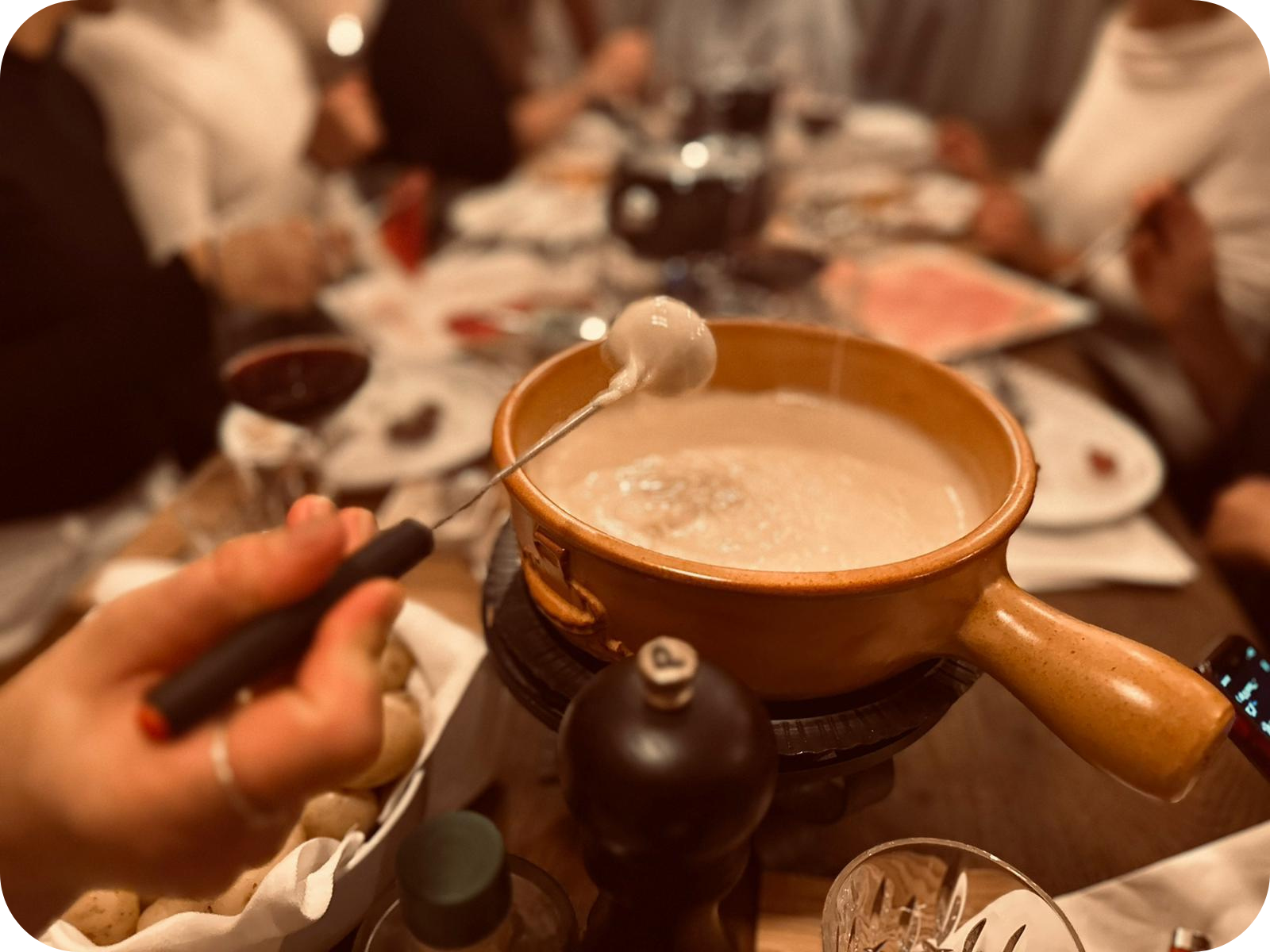 600gr di fondue al formaggio, preparata con una selezione di formaggi ticinesi, perfetta per due persone.